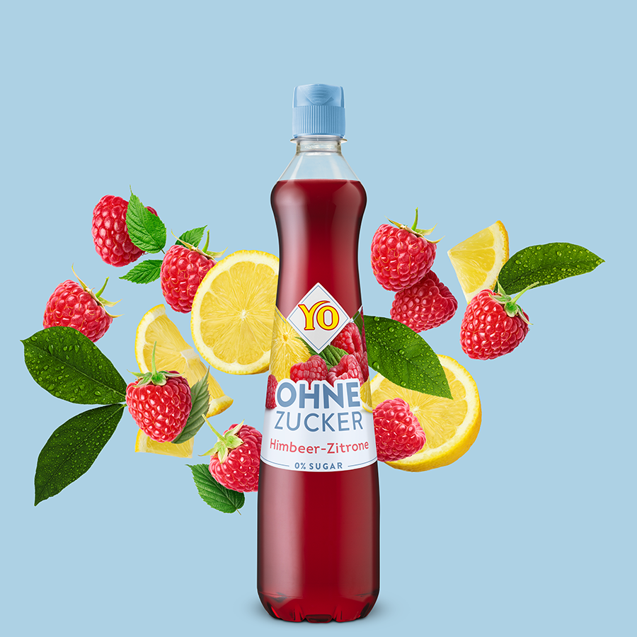 Mit YO Ohne Zucker Himbeer-Zitrone gibt es eine köstliche neue Fruchtsirup-Sorte komplett zuckerfrei. Eine fruchtige Erfrischung für alle, die zwar auf Kalorien, nicht aber auf vollen Geschmack verzichten wollen. Der Genuss für jeden Tag, ohne Kompromisse und mit gutem Gewissen.